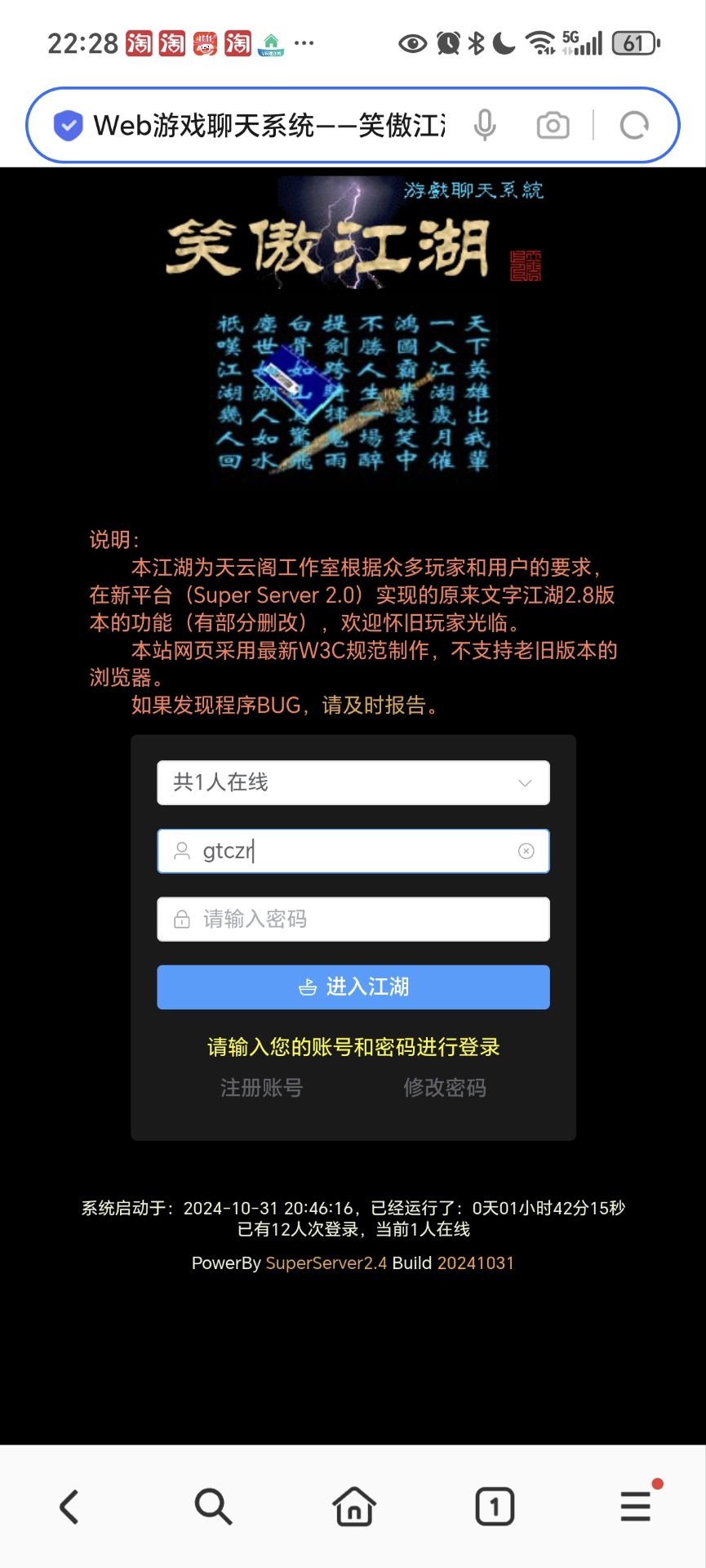 [RSA] Private = 你的RSA私鑰 Public = 10001 Module = 你的RSA模數(shù) [Setup] ;數(shù)據(jù)庫連接 MySQL = {"Host":"127.0.0.1","Port":3306,"User":"root","Passwd":"你的密碼"} ;游戲數(shù)據(jù)庫 gameDB = xajh2(你自己的數(shù)據(jù)庫名) ;賬號驗證數(shù)據(jù)庫 AuthDB = tt3000db(你自己的數(shù)據(jù)庫名) MaxAnte = 1000 RoomCount = 3 [Room1] Name = 長安城內(nèi) MaxUser = 2 RandomMin = 710 RandomMax = 10000 [Room2] Name = 華山之巔 MaxUser = 10 RandomMin = 710 RandomMax = 10000 [Room3] Name = 世外桃源 MaxUser = 1 RandomMin = 710 RandomMax = 10000